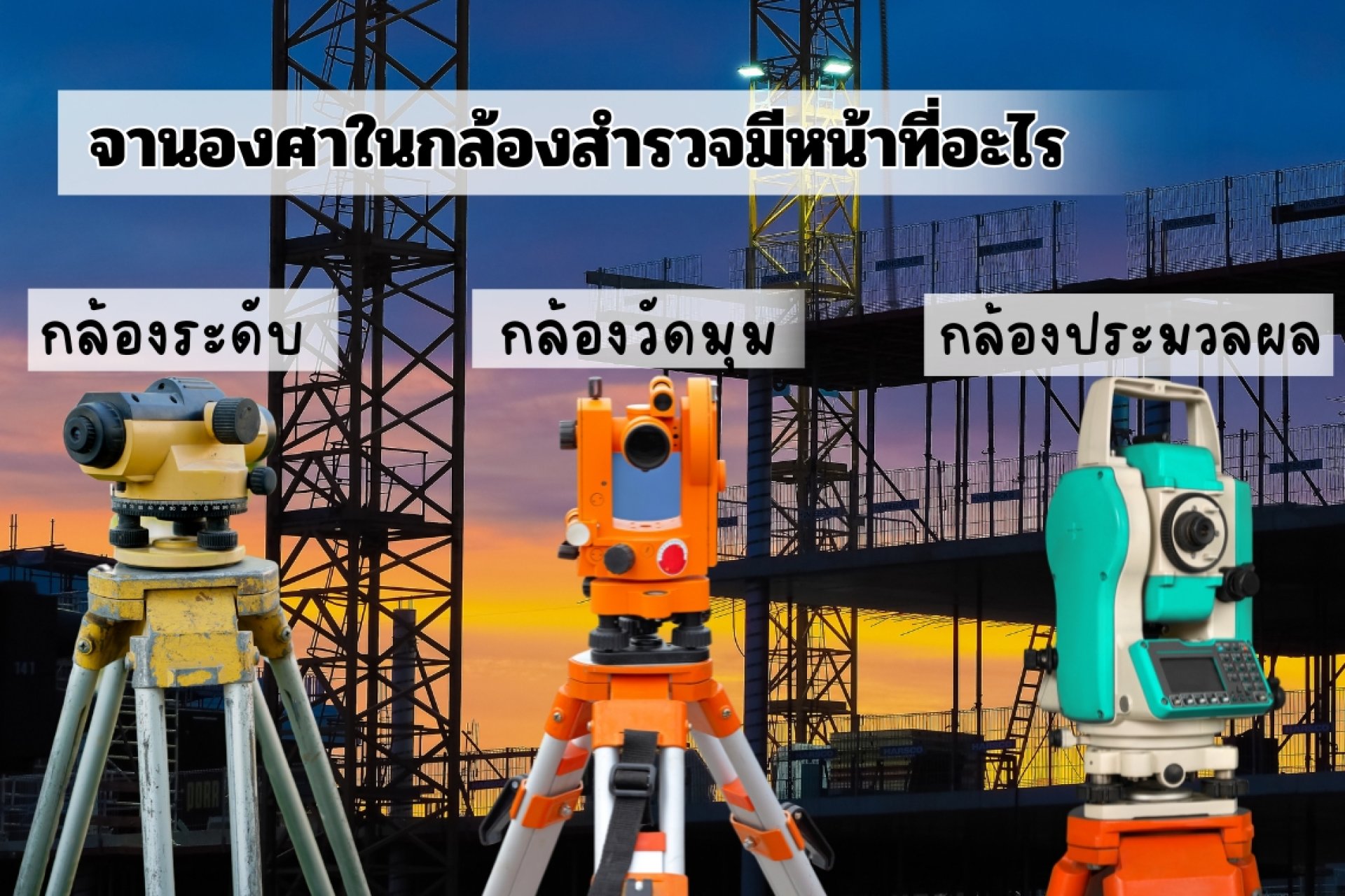 โดยกล้องสำรวจจะมีระบบอ่านค่ามุมจากจานองศา ทำให้สามารถระบุค่ามุมที่แม่นยำสำหรับงานสำรวจต่างๆ เช่น การวางแนวโครงสร้าง งานสำรวจที่ดิน หรือการทำแผนที่ภูมิประเทศ