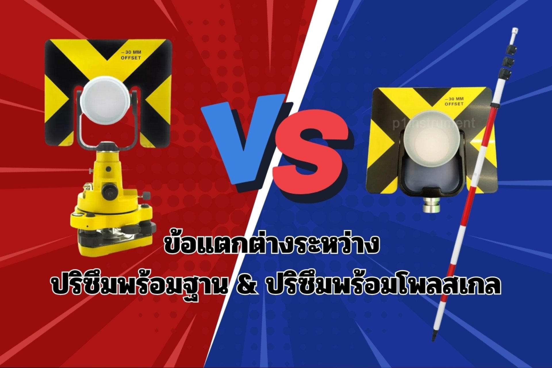 ปริซึมพร้อมฐาน เหมาะกับการใช้ในงานที่ต้องการสะท้อนสัญญาณเพื่อคำนวณระยะทางหรือมุม ขณะที่ ปริซึมพร้อมโพลสเกล จะใช้ในงานสำรวจที่ต้องการวัดระดับความสูงหรือการตั้งปริซึมในระยะที่สูงขึ้นจากพื้นดิน