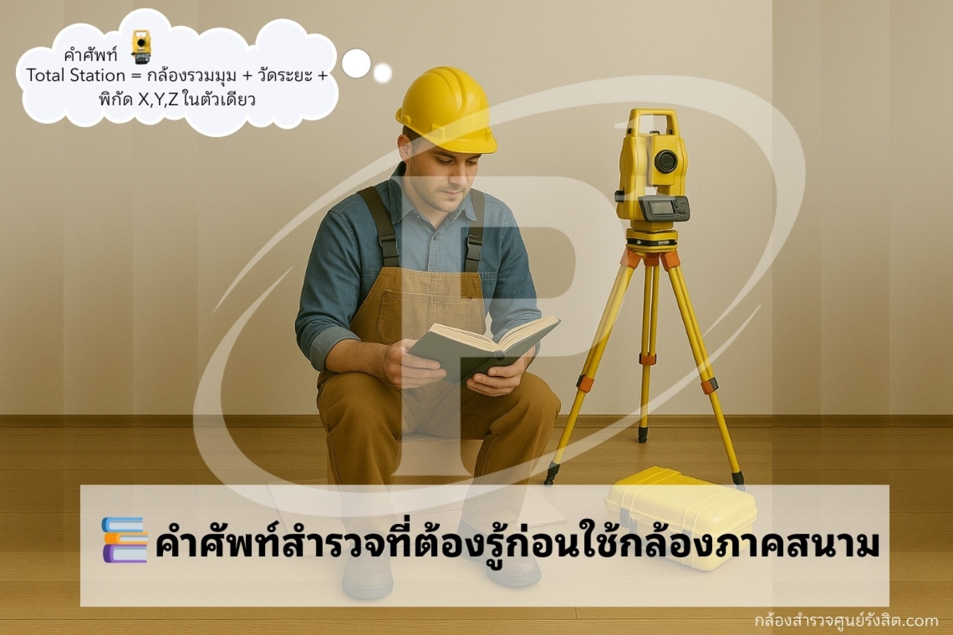 การทำงานสำรวจด้วยกล้อง (Total Station, Theodolite, Auto Level) ไม่ใช่แค่การตั้งกล้องกับอ่านตัวเลข แต่ยังต้องเข้าใจ คำศัพท์เฉพาะทาง ที่ใช้สื่อสารในงานจริงด้วย ถ้าเข้าใจศัพท์พวกนี้ จะทำให้ การเรียนรู้ไวขึ้น วัดงานได้แม่นขึ้น และทำงานร่วมกับทีมได้มืออาชีพ ทันที