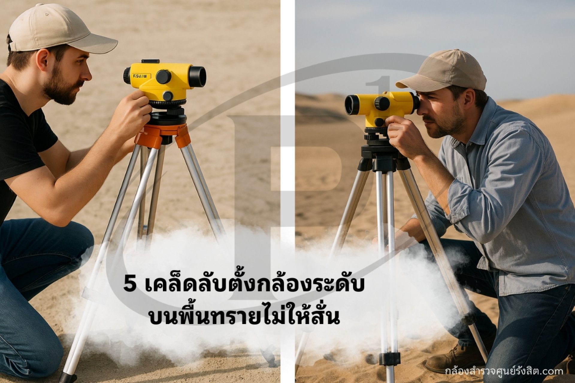 การตั้งกล้องระดับบนพื้นทรายหรือพื้นอ่อนนุ่ม เช่น ทรายทะเล หน้าดินร่วน หรือดินถมใหม่ มักทำให้กล้อง “สั่น-ทรุด-ขยับ” จนวัดค่าระดับผิดพลาดได้