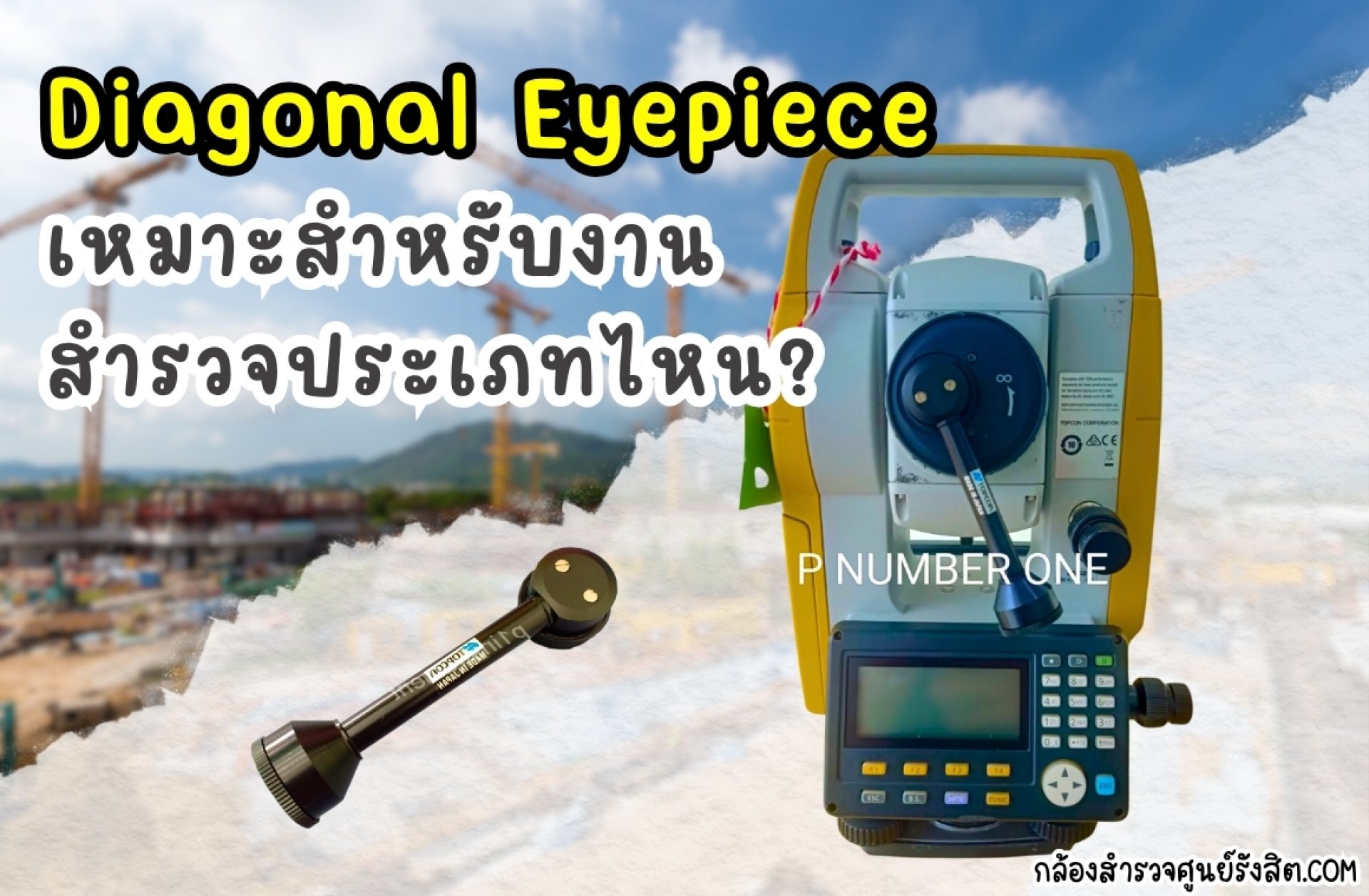 Diagonal Eyepiece (หรือที่เรียกว่า Diagonal Prism) คืออุปกรณ์เสริมที่ออกแบบมาเพื่อเพิ่มประสิทธิภาพและความสะดวกสบายในการสำรวจในสถานการณ์ที่ท้าทาย โดยหลักแล้วจะใช้กับ กล้อง Total Station และ กล้องวัดมุม (Theodolite) ในงานสำรวจที่ต้องมองเห็นเป้าหมายในมุมที่ผิดปกติหรือไม่สะดวก