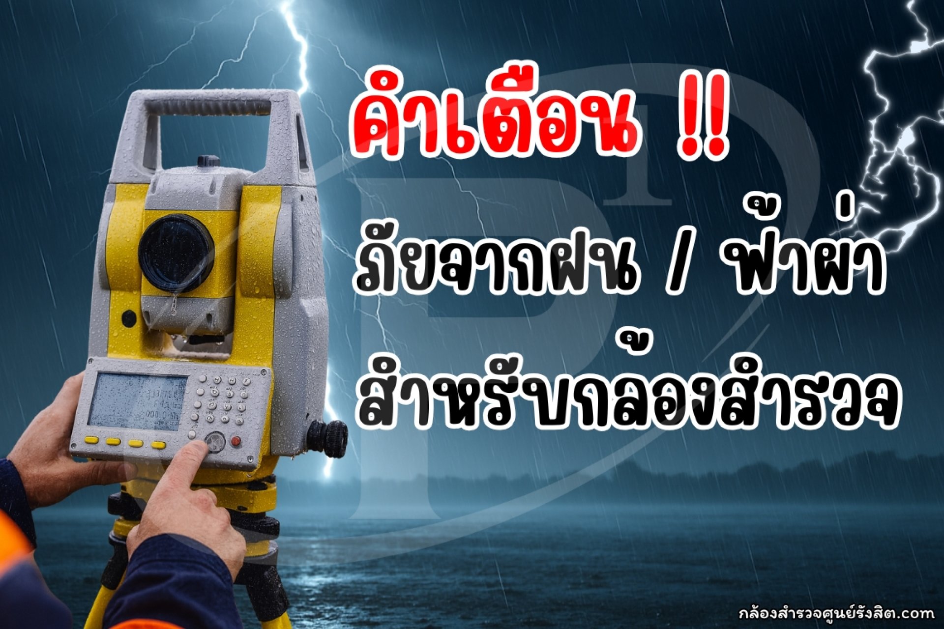 คำเตือนภัยจากฝนและฟ้าผ่า สำหรับการใช้งาน กล้องสำรวจในช่วงฤดูฝน ซึ่งจำเป็นต้องแจ้งให้ ช่างสำรวจและทีมภาคสนาม ทราบอย่างชัดเจน เนื่องจากอุปกรณ์สำรวจ (เช่น Total Station, กล้องระดับ, ขาตั้ง ฯลฯ) มักทำจากโลหะ และเสี่ยงต่ออันตรายจาก ฟ้าผ่า และ ความเสียหายจากความชื้น