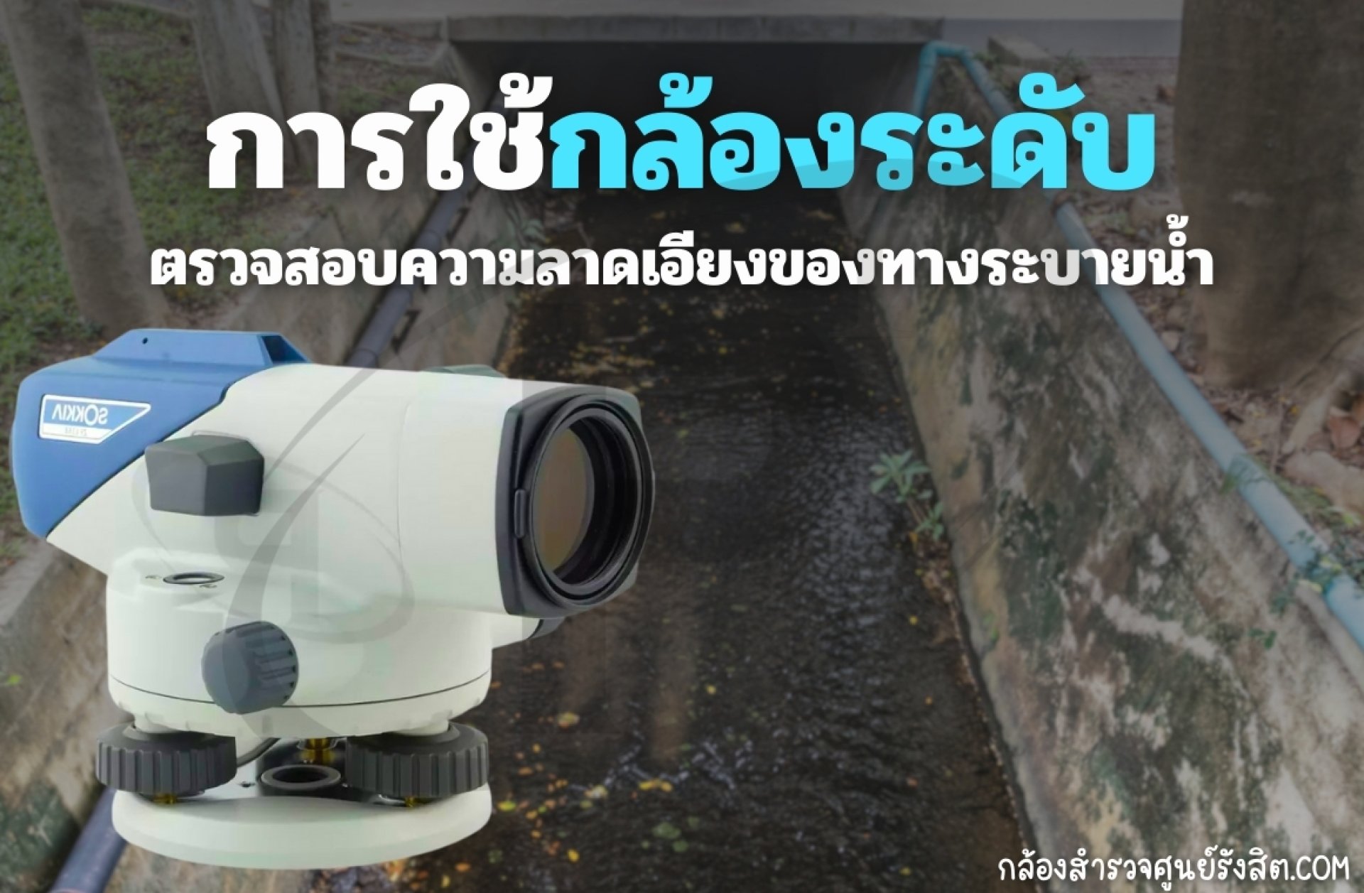 การใช้กล้องระดับตรวจสอบความลาดเอียงของทางระบายน้ำ