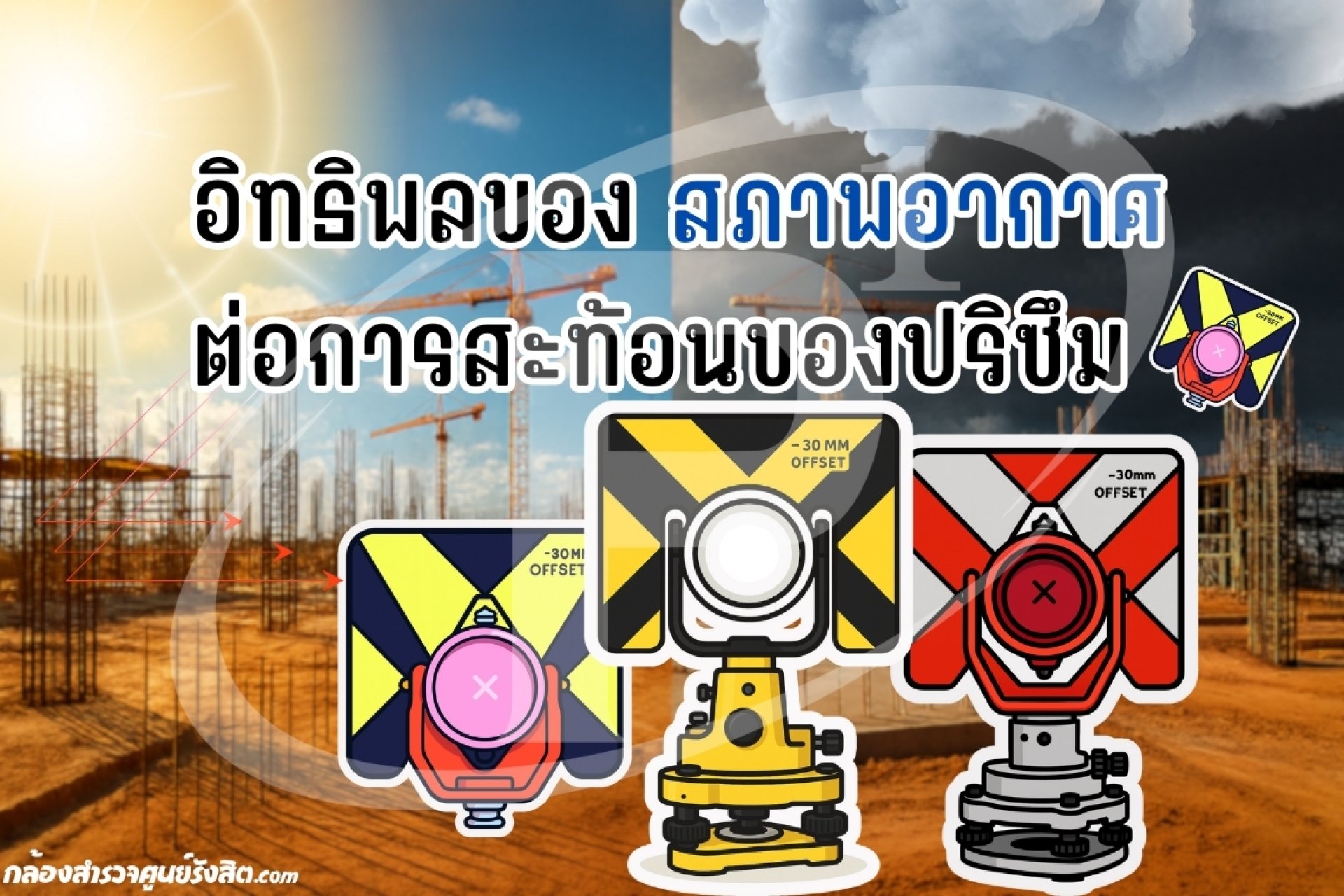 การใช้ ปริซึม (Survey Prism) ร่วมกับกล้อง Total Station มีความแม่นยำสูง แต่ผลการสะท้อนแสงจากปริซึมอาจได้รับผลกระทบโดยตรงจาก สภาพอากาศ ซึ่งหากไม่ควบคุมหรือตระหนักถึงปัจจัยเหล่านี้ อาจทำให้ค่าที่ได้มีความคลาดเคลื่อน