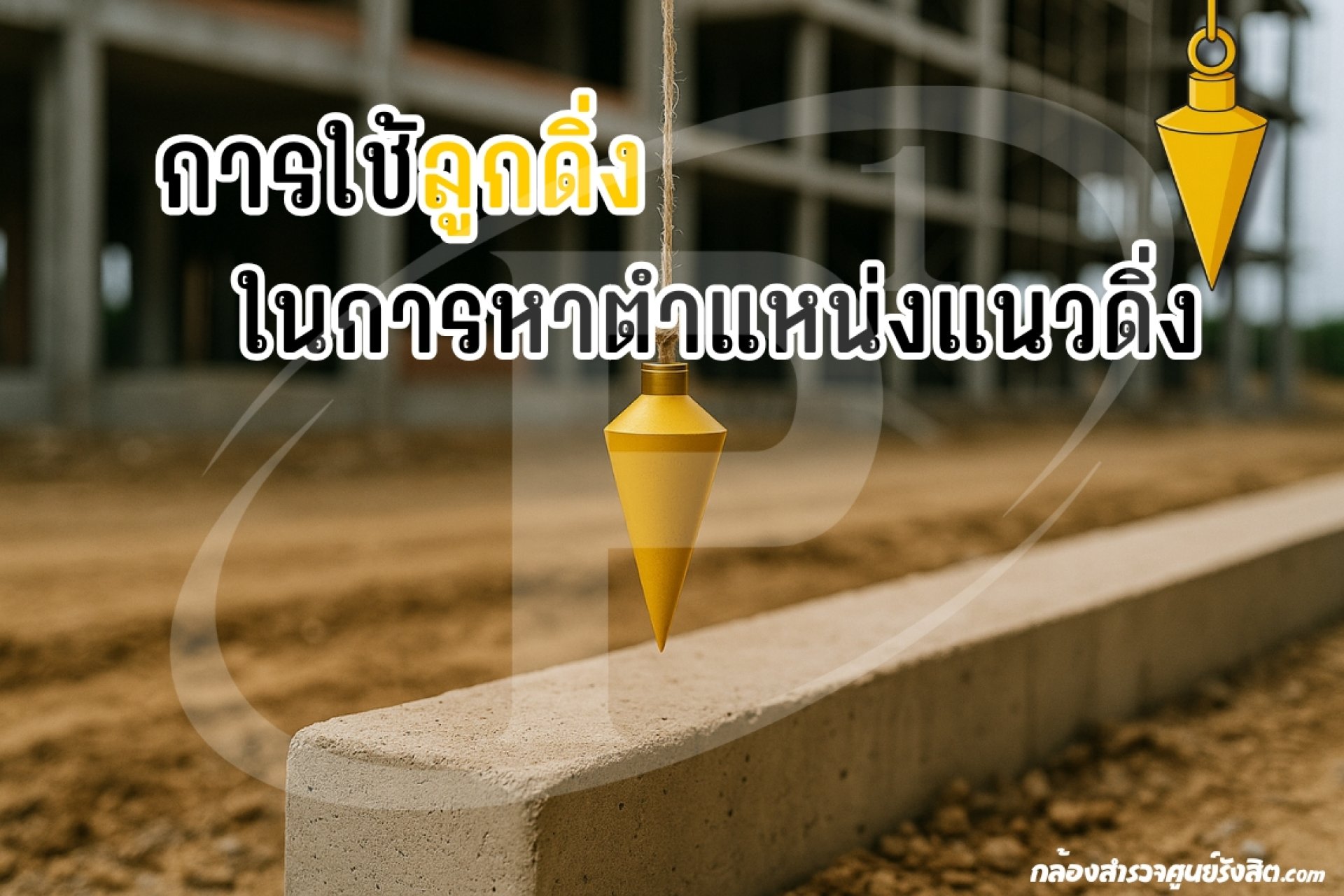 - ใช้ลูกดิ่งตรวจสอบความตรงของเสา คาน หรือผนังอาคาร