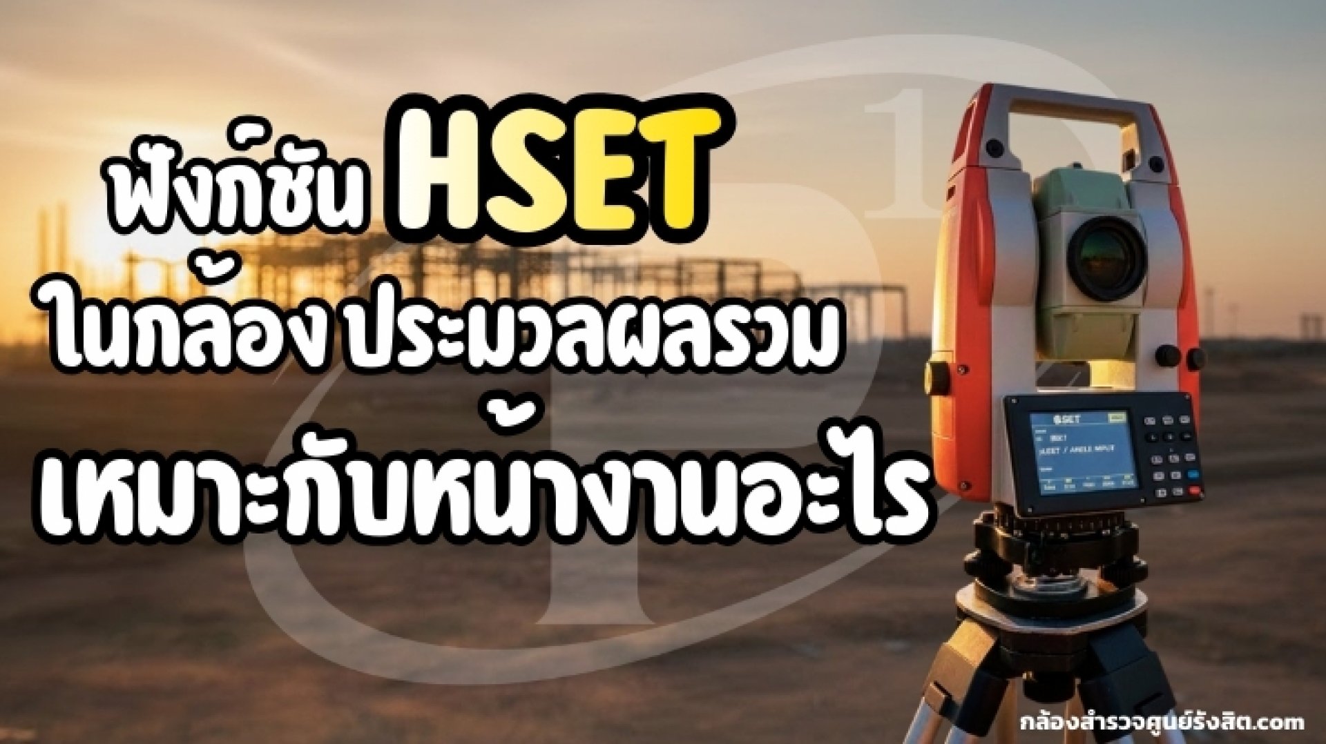 ฟังก์ชั่น HSET (Horizontal Angle Set) ในกล้อง Total Station คือคำสั่งที่ใช้สำหรับ "การกำหนดค่ามุมราบ" ให้เป็นค่าที่เราต้องการ ณ ตำแหน่งที่กล้องกำลังเล็งอยู่ โดยปกติแล้ว เมื่อเราหมุนตัวกล้องไปมา ค่ามุมราบ (Horizontal Angle หรือ HR/HL) จะเปลี่ยนไปเรื่อยๆ ตามการเซ็นเซอร์ของตัวเครื่อง แต่ฟังก์ชั่น HSET จะเข้ามาช่วยในสถานการณ์สำคัญดังนี้