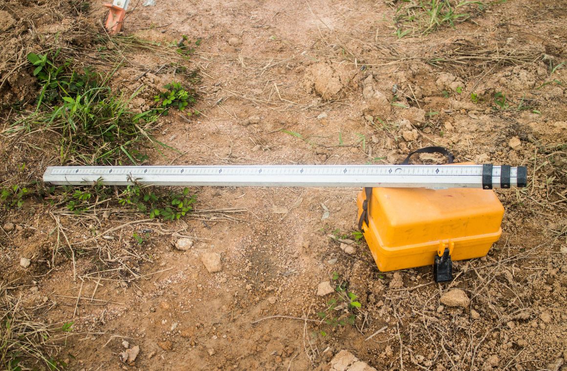 2. ไม้สต๊าฟ (Staff or leveling rod): ใช้เป็นมาตรฐานในการวัดระดับความสูงของจุดต่างๆ โดยมีมาตราส่วนที่สามารถอ่านค่าได้ง่าย