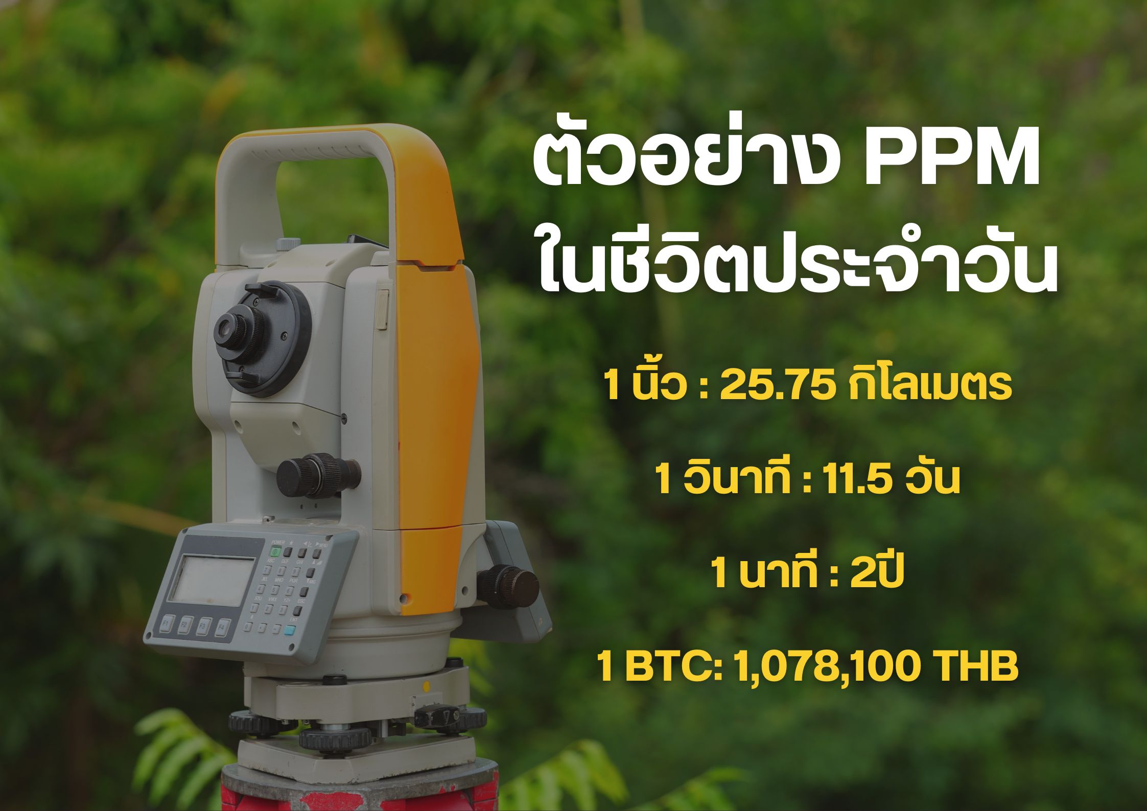 สามารถตีความเป็นเปอร์เซ็นต์ง่ายๆว่า 1 ต่อ 1,000,000 ก็ได้ และหากเราลองเทียบ 1 PPM กับเรื่องในชีวิตประจำวันก็จะได้ประมาณนี้