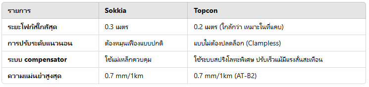 ข้อจำกัดในการใช้งานกล้องระดับอัตโนมัติ Sokkia และ Topcon