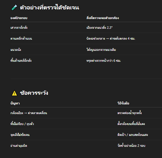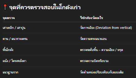 เช่น เสาเบี้ยวออกจากแนวตรง 1.5° → แปลว่าโครงสร้างมีการเปลี่ยนรูป