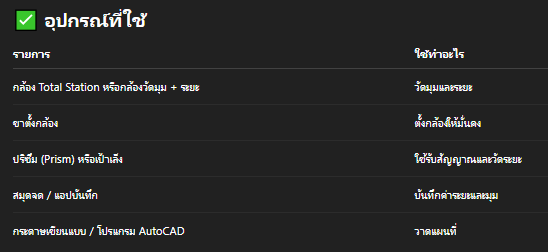 ไม่ต้องใช้ GPS หรืออุปกรณ์หลายตัว แค่ กล้องสำรวจ + ไม้ปริซึม ก็สามารถวัด, คำนวณ, และวาดแผนที่คร่าว ๆ ได้เอง เหมาะกับงานเบื้องต้น เช่น การรังวัดสำรวจที่, เตรียมแบบ, วางผัง, ออกแบบ หรือการศึกษา