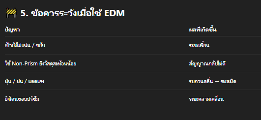 โดย EDM จะคำนวณระยะทางจาก กล้องไปยังเป้าหมาย ด้วยความเร็วของคลื่น