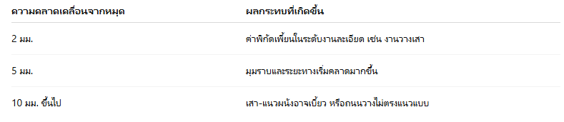 - ผลคือเส้นแนว, ระยะ, และระดับในงานก่อสร้างจะผิดไปตาม